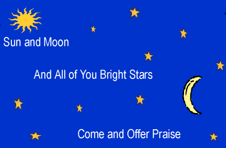 Staple the cutouts to the bulletin board, and join the sun, moon, and stars in singing God's praises. What a good day to sing Earth and All Stars (Lutheran Book of Worship 558)!