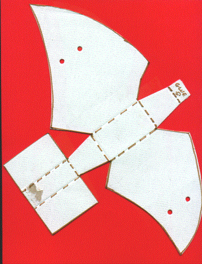 Punch the holes, and cut 1/4-inch red ribbon into 13-inch pieces to tie the boat together.