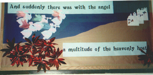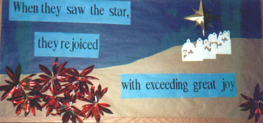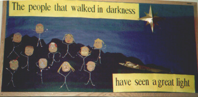 And we make gifts, crismons, and stars to decorate the tree, or candle rings or tryptiches in honor of the season as well as the bulletin board from Isaiah 9: 2.
