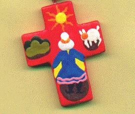 Crayola Model Magic takes form easily and can be painted once it is dry. Insert an eye or pin of some sort before the clay is dry so the cross can be worn as a pendant or pin.