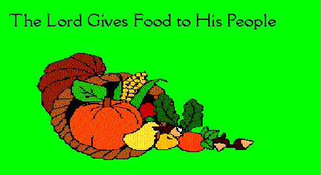 We're still in green for Pentecost, so put up a green background and banner. Make a cornucopia from corrugated cardboard or brown construction paper.