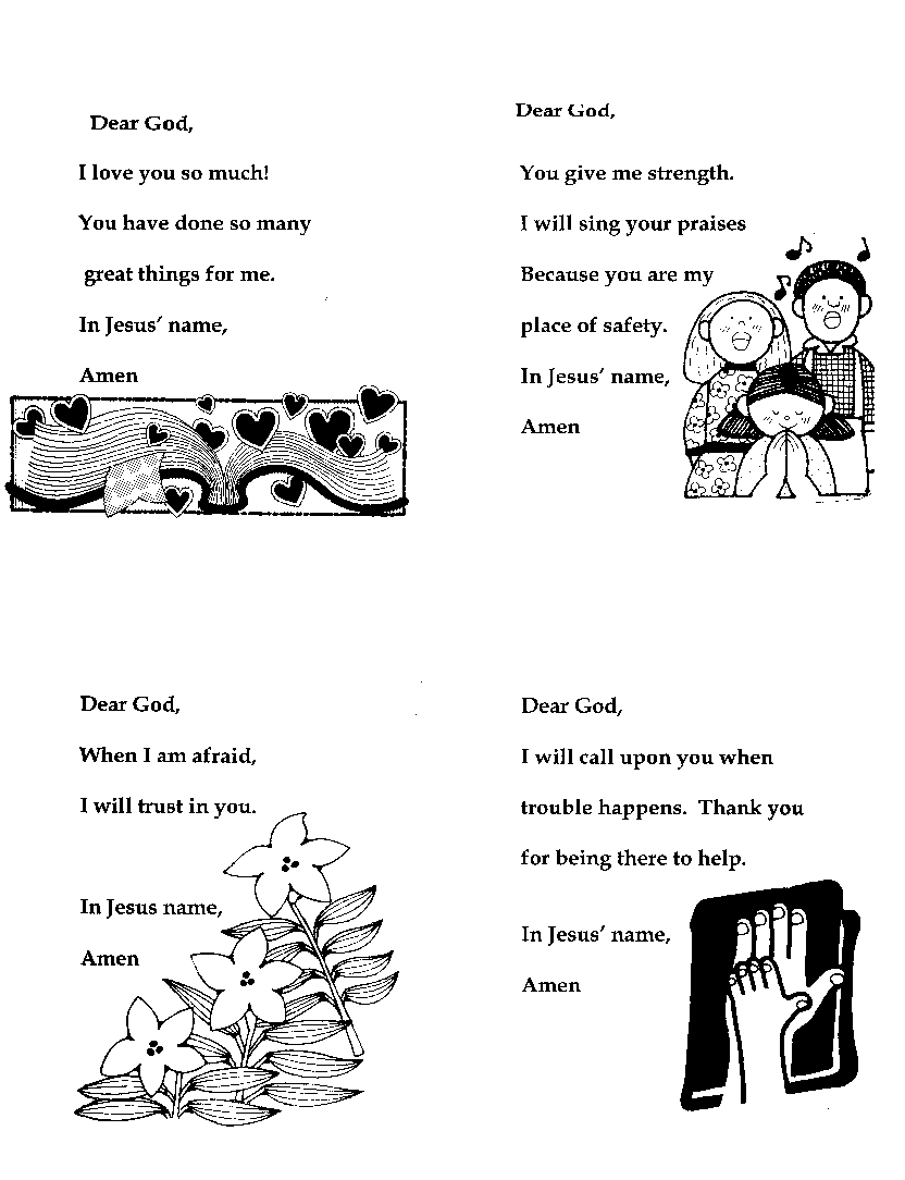 Let the children decorate the pages with crayons or markers - they can even hand-letter each prayer if you like.
