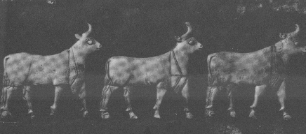 Shape the cow or bull from bakeable clay (a finished size of 3-1/2 inches tall by 5 inches long is good), bake the clay according to the package directions, and paint appropriate markings on the cow.